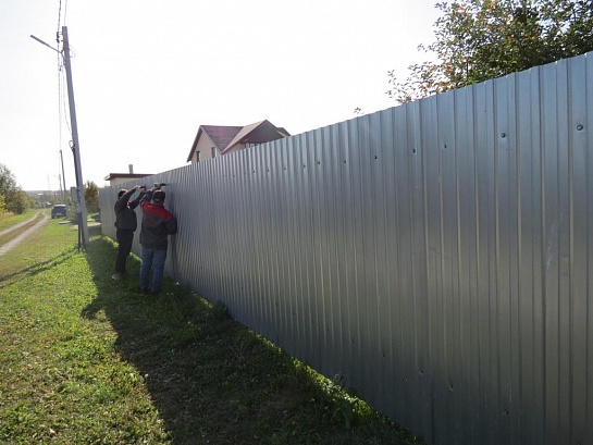 Забор из оцинкованного профнастила с забивными столбами 190 метров